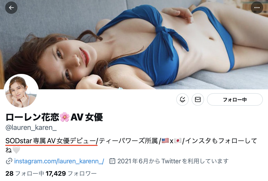 她的twitter名称也变了,从SOD Star専属变成了SOD Star専属AV女优デビュー(SOD STAR专属AV出道),意思就是她是从那儿出道但现在已经不属于那儿了,再加上帮忙她发行VR片的unfinished是家不养专属女优的片商,所以答案很明显了,她现在就是个游走各片商发片的企划女优,作品多多益善〜