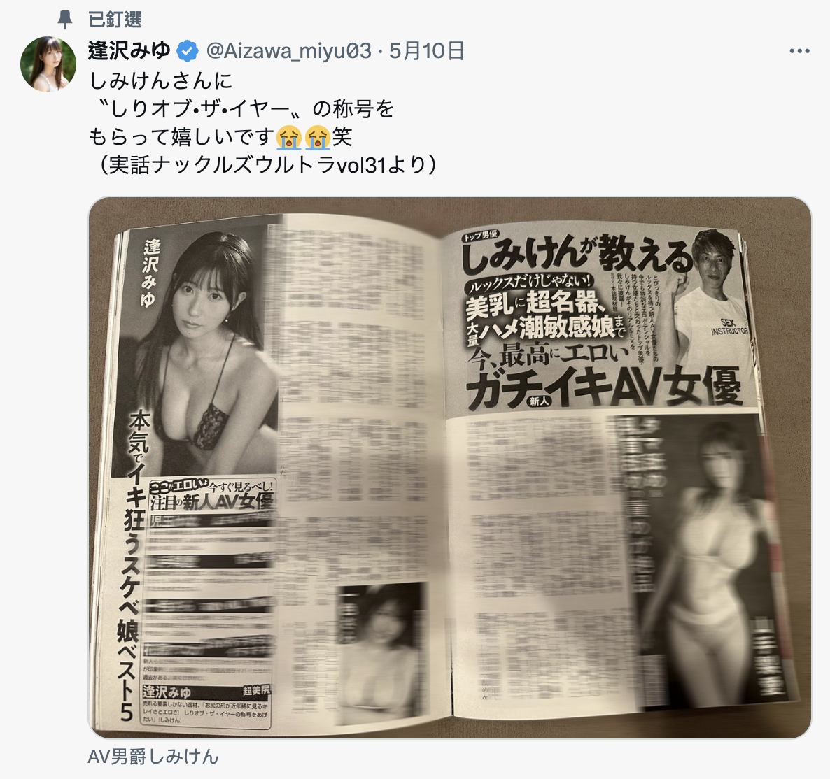 逢沢みゆ(逢泽美优)对此非常骄傲,直接把杂志的内容放上自己的X(https://twitter.com/Aizawa_miyu03),比较可惜的是虽然有偶像资历又是大型片商出道的顶级女优,但逢沢みゆ(逢泽美优)出自被八大门派抵制的All集团让她不太容易到海外做活动,不过有了这篇访谈,搞不好马上就有业者行动了〜