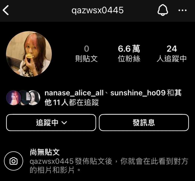 请大家一同来看看这个IG帐号(https://www.instagram.com/qazwsx0445),虽然发文已清空,不过从追踪者有七瀬アリス(七濑爱丽丝)、安位薫以及fempass这媒体就知道有着6.6万追踪的这帐号就是之前星まりあ(星麻里亚)在用的IGー而这个IG在上个礼拜悄悄更换了头像,也让喜欢她的粉丝士气大振〜