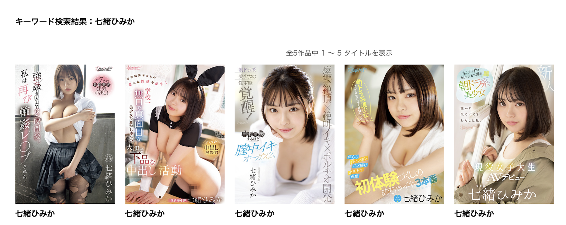 透过嘴唇上方以及脸颊上的痣我们就可以确定她就是在片商kawaii*出道的「七绪ひみか(七绪绯美佳)」:她是去年暑假出道的好手,因为被认为是広瀬すず(广濑铃)的明星脸,所以片商是直接用专属契约「框」了下来,给了她5支作品的机会⋯
