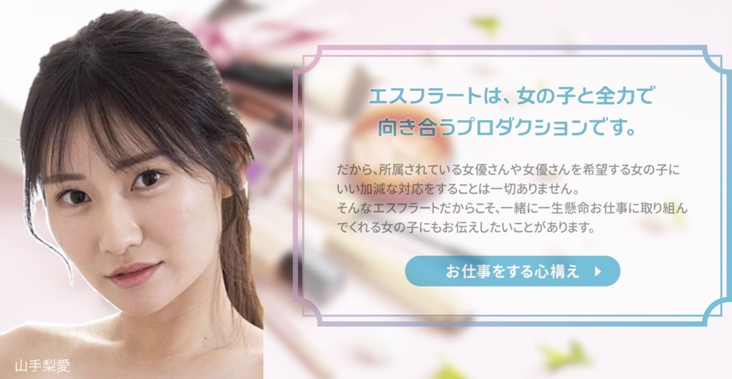 那就是开始清除山手梨爱的资料了,一进官网,最上方的Banner已经没有山手,而是放上目前经纪公司等级最高的两位女优ーFaleno集团片商maryGOLD的专属女优「松下りこ(松下莉子)」以及片商S1的专属女优「中森心々奈(中森心心奈)」,另外,女优的名单也做了调整,山手梨爱也不见了〜