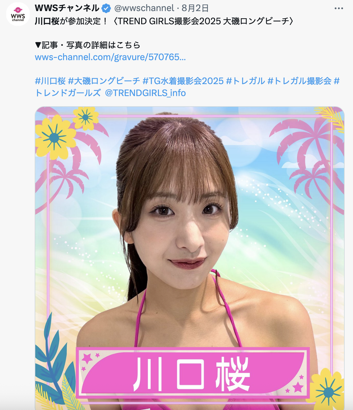 这是Moodyz的专属新人「川口桜(川口樱)」,从文案的第一句话就知道她有理想有抱负,想成为每个粉丝心目中的神力女超人ー而她的出现也解答了我们的疑问,因为前两天厂商Trend Girls要在9月27和28日举办的户外摄影会有介绍她,之前不知道她是何方神圣,现在明白了,她是Moodyz的大型新人: