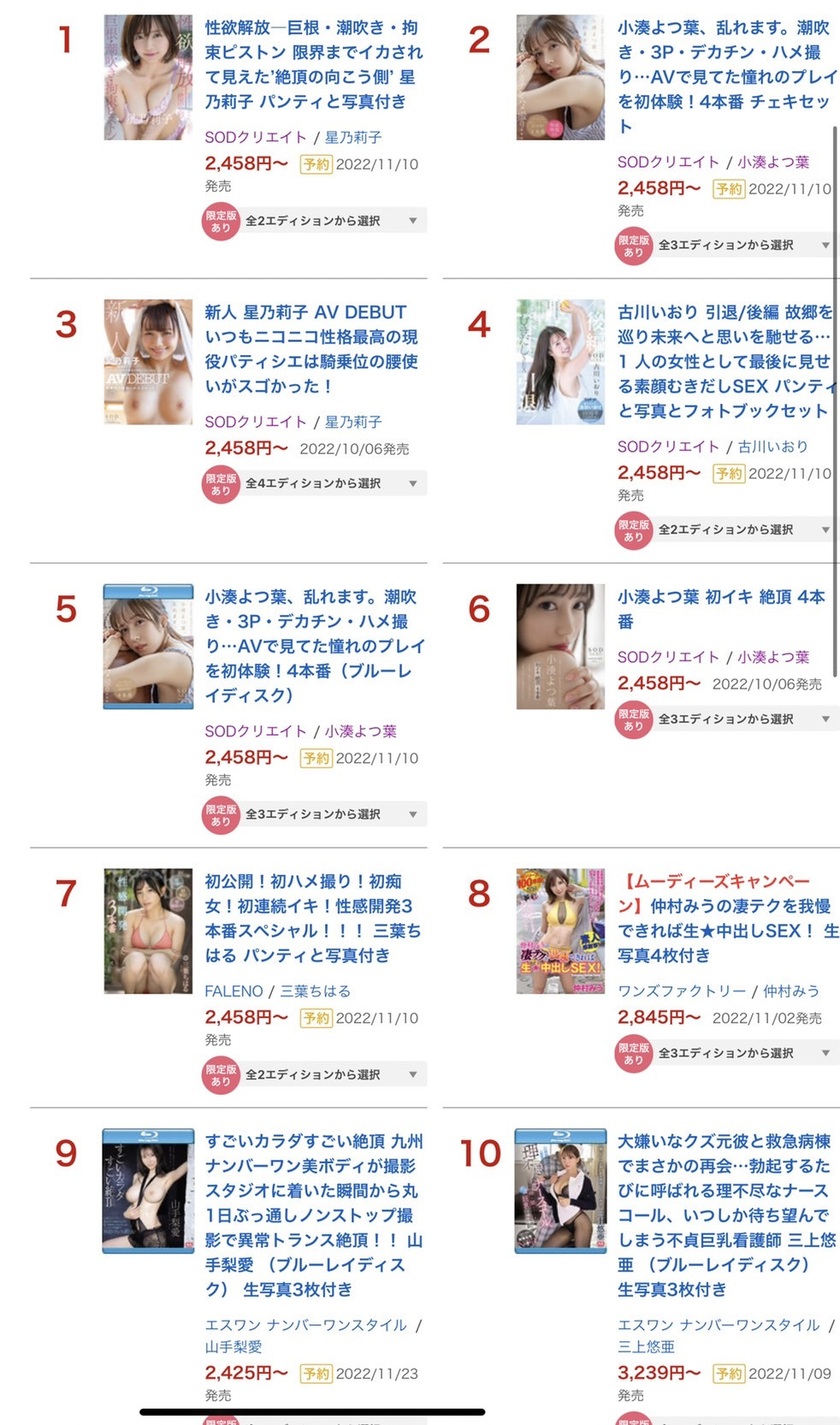 今天,FANZA更新了销售排行榜,结果出现了意料之外的答案: