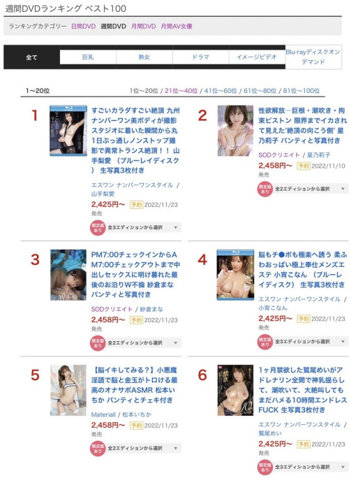 在刚出炉的FANZA单周销售排行榜中,山手梨爱击败了SOD Star近期表现最好的新人「星乃莉子」拿下第一,而且不只山手梨爱,小宵こなん(小宵虎南)和鹫尾めい(鹫尾芽衣)也都取得了非常好的成绩ー我想原因不难理解,我用五个字来说明就可以了: